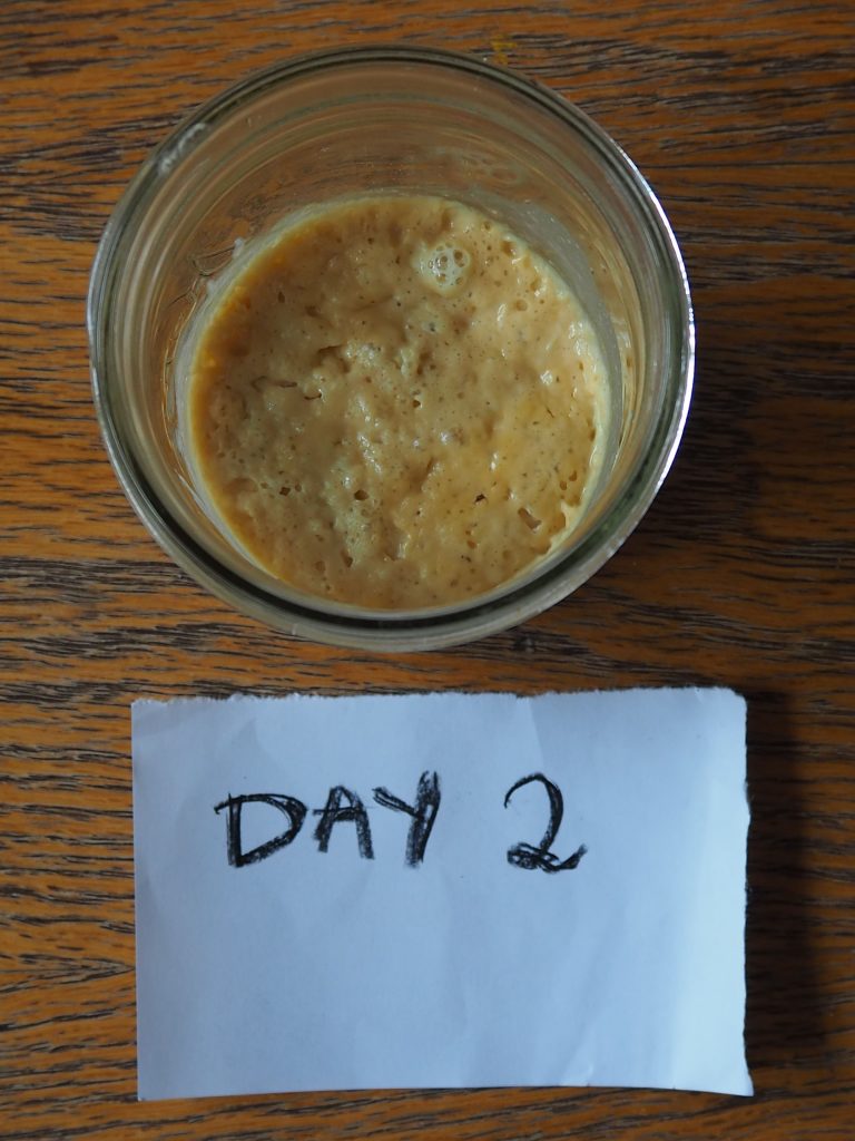 On day one, I created my starter, following the above directions. After creating it, I put it in my cabinet, where I store some of my actively fermenting foods.