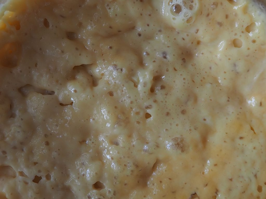 Since this particular starter is made not from a grain but from a legume, it does not have quite the same sourdough smell you may be familiar with.