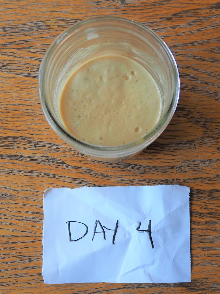 Getting impatient, I decided to feed my starter twice on day four, once in the morning, and again in the early afternoon.