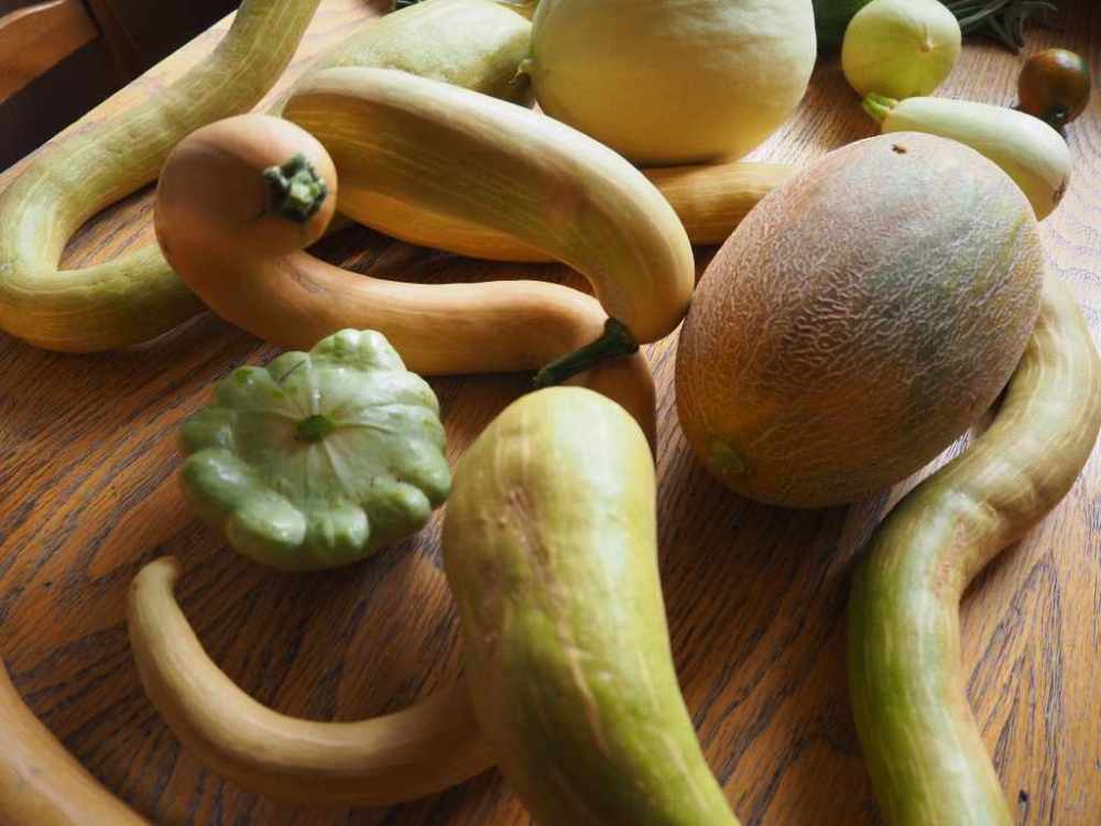 Each year we grow around a dozen different varieties each of winter squash, summer squash, tomatoes, melons, watermelons, and lettuce, as well as several different types of kale, carrots, and turnips.