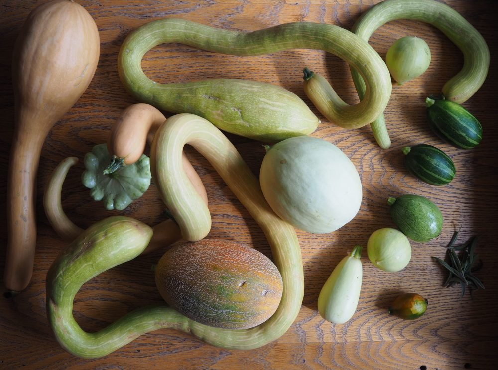 ‘Zucchino Rampicante’ is pictured below with its similarly long squash brethren.