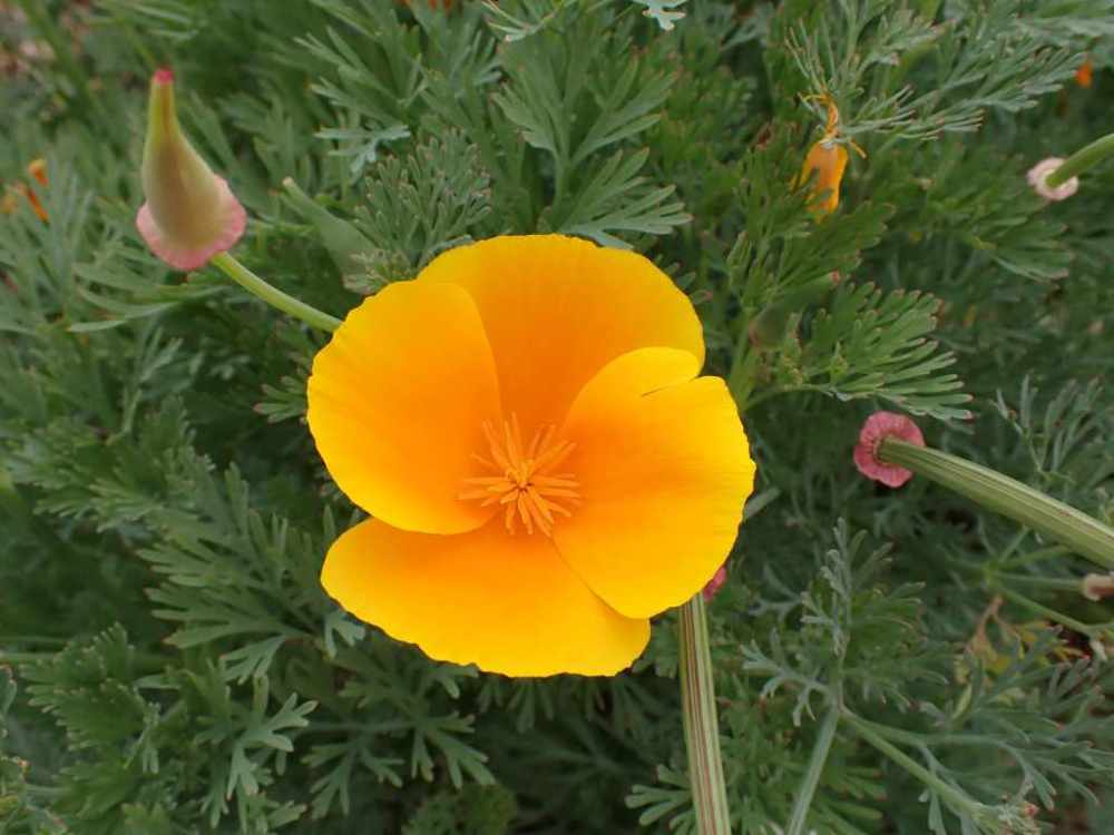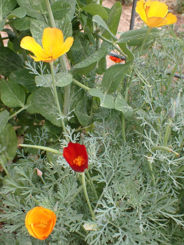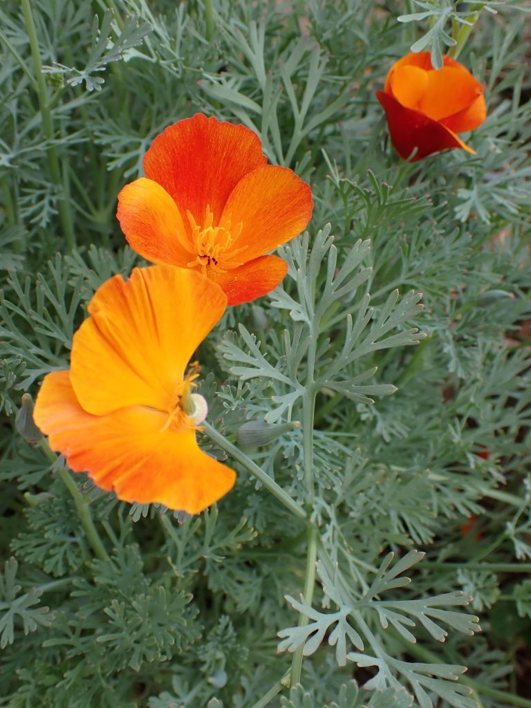 We planted not just the standard species (Eschscholzia californica), but also tried a cultivar called ‘Mikado’ which has darker orange blooms.