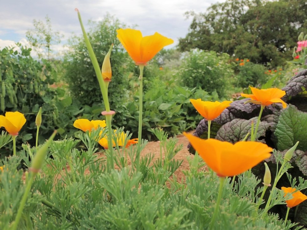 While we still grow some exotic garden flowers in our polyculture garden, such as cosmos and zinnias, this year I decided to add more native annuals to the mix. One of the native wildflowers I planted was California poppies.