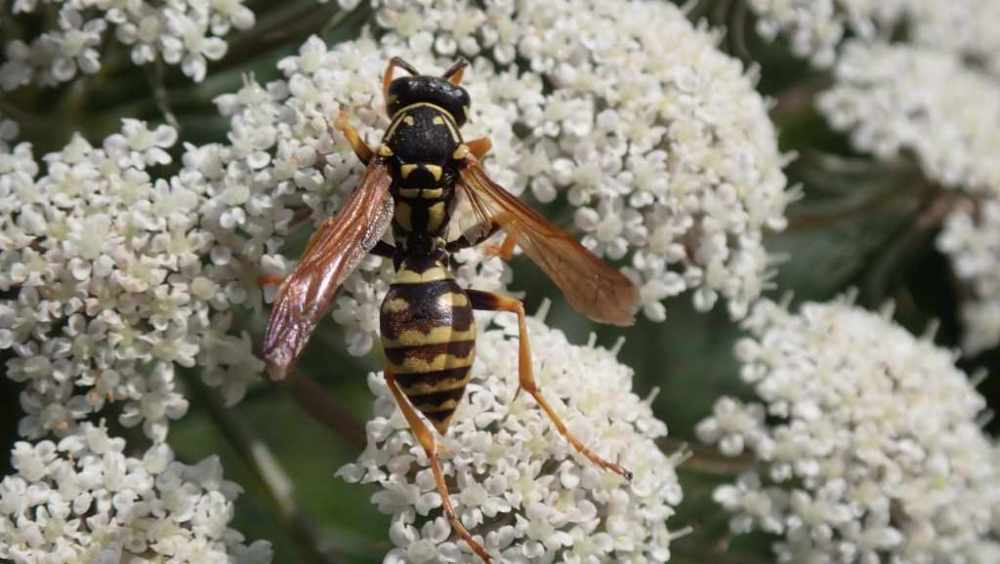 Wasps are also regular residents of the garden. I frequently watch them and sneak up close to take photos – so far, no stings, and not much sign that they even mind being watched.