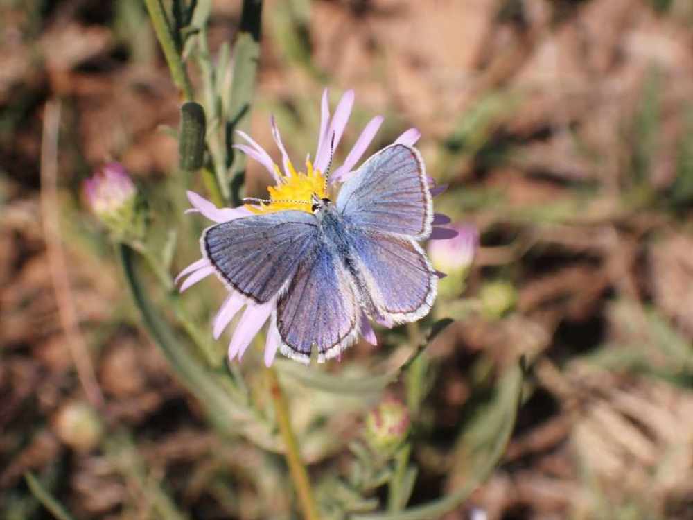 Our pollinator neighbors are grateful for this late season source of forage. I’ve seen bees, bee flies, and butterflies visiting these flowers – notably the Melissa blue butterfly.