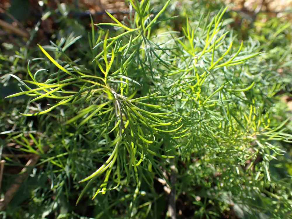 Dill seedlings have popped up as volunteers beneath the dried plants that grew all summer long.