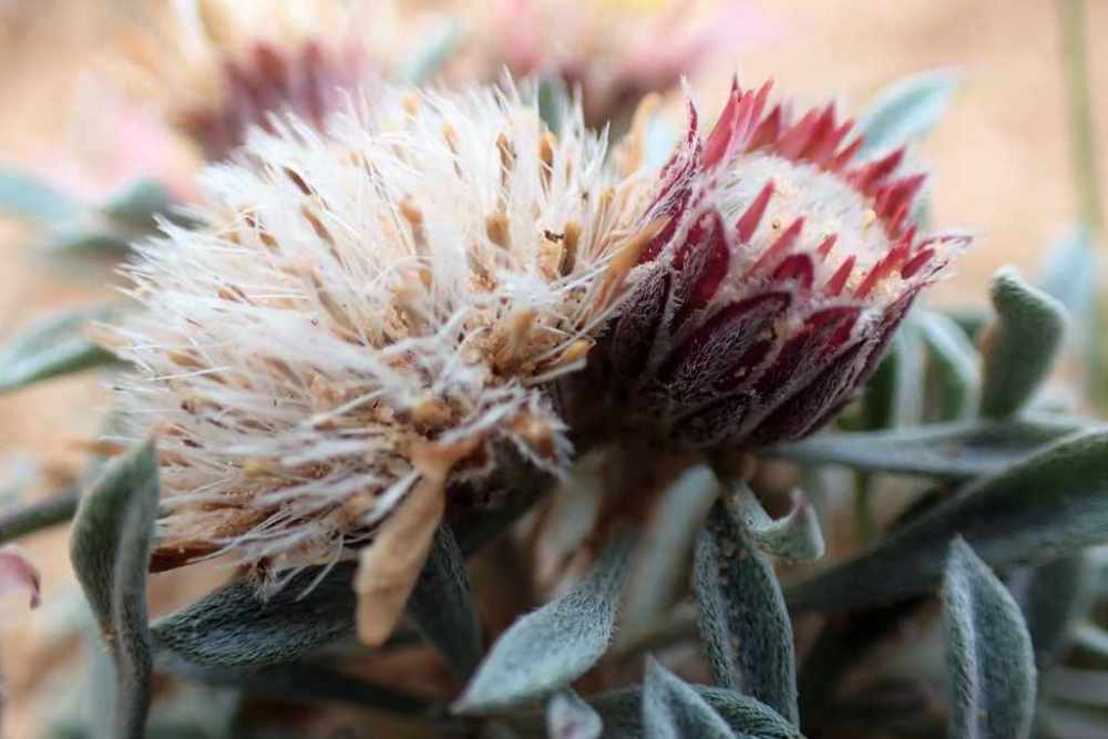 Both of these plants – different species (though I’m too lazy at the moment to try identifying them) have blueish leaves, which helps reflect hot blue light, an adaptation to a harsh climate.