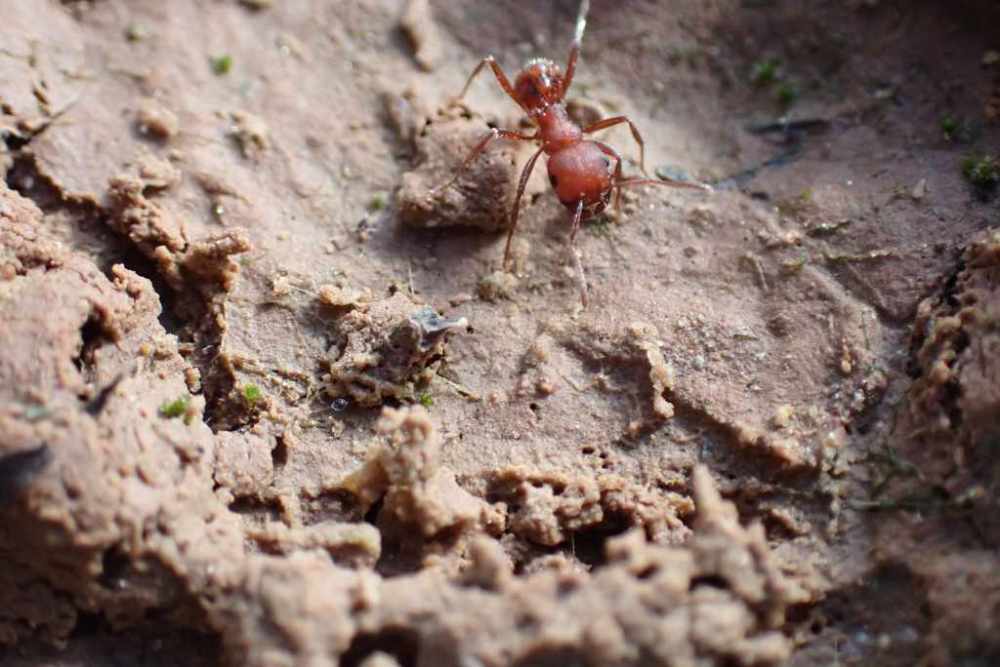 Taking close up photos of minute mushrooms gave me a chance to observe an ant going about its business as well.