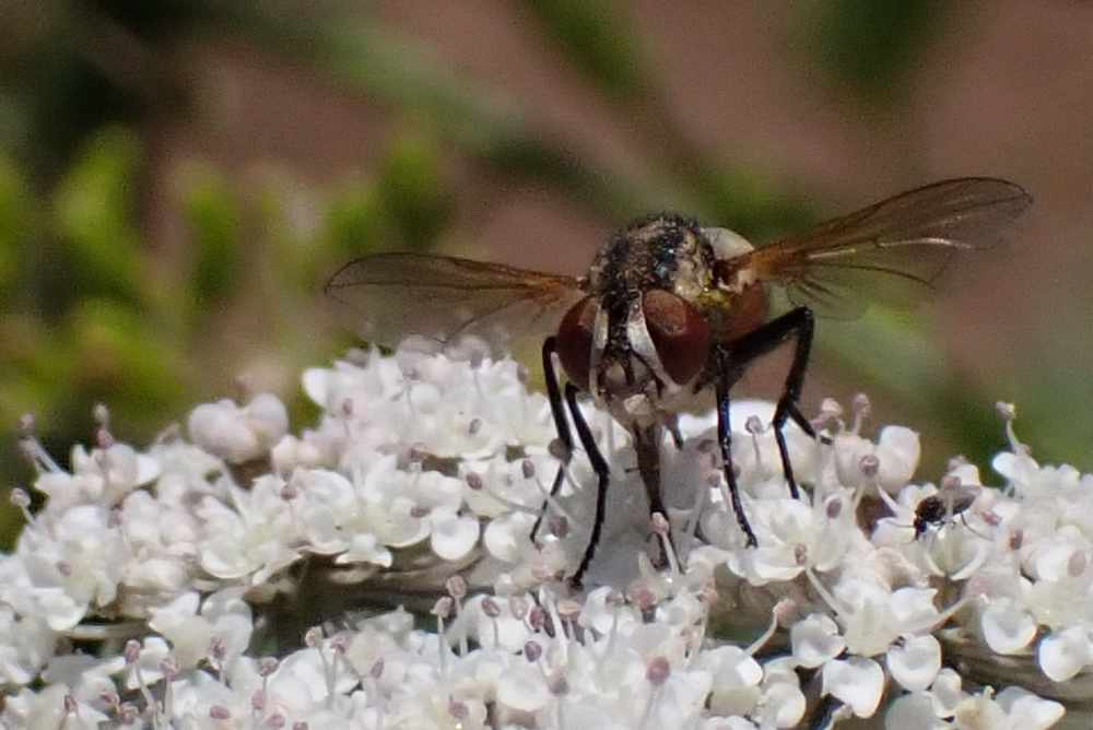 While wasps seem to be the most popular guests at the bolted carrot buffet, I also see bumble bees, flies, and other types of bees.